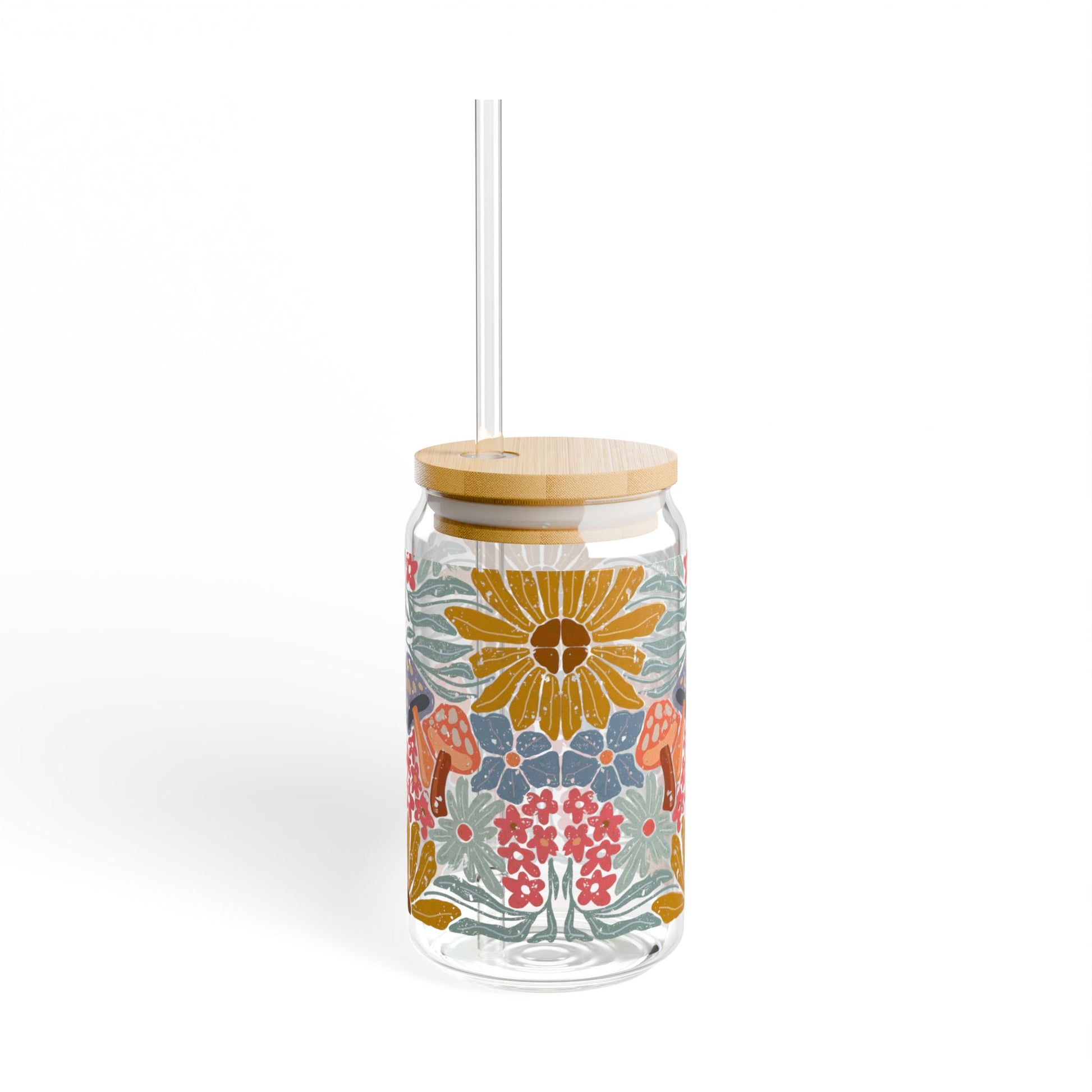 Sip in style with this Pressed in Prose 16oz Glass Tumbler, designed for the cottage-hearted and lovers of whimsical, bohemian charm. Featuring a delicate floral motif of sunflowers, mushrooms, and wild blooms, this glass brings a touch of storybook magic to your everyday routine.